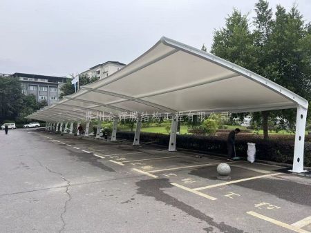 膜結(jié)構(gòu)車棚是一種以高強(qiáng)度柔性膜材與支撐結(jié)構(gòu)(鋼架、鋼柱或鋼索)結(jié)合的現(xiàn)代化停車設(shè)施,憑借其輕盈造型、靈活適應(yīng)性,已成為城市停車解決方案的主流選擇。