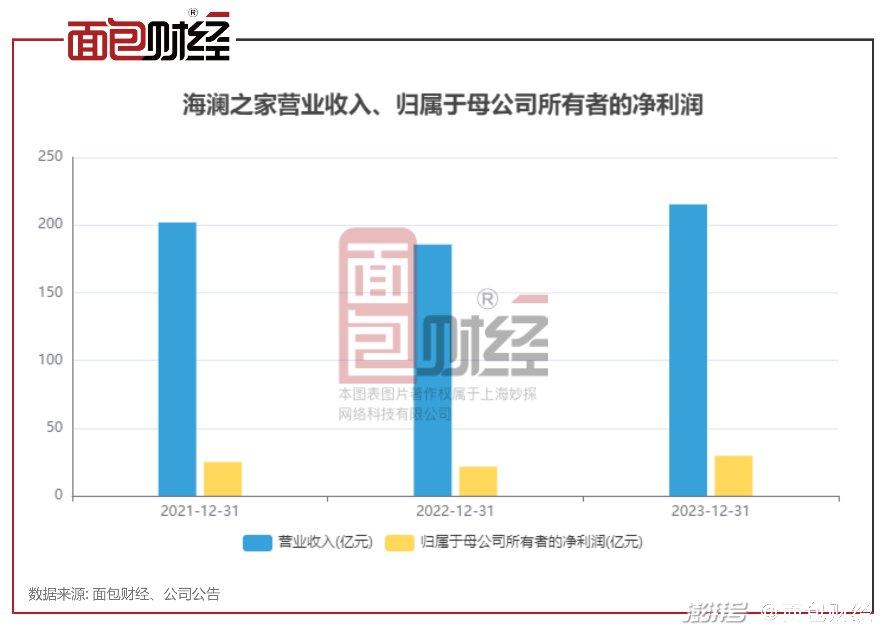 2023年,海瀾之家實(shí)現(xiàn)營收215.28億元,同比增長15.98%;實(shí)現(xiàn)歸母凈利潤29.52億元,同比增長36.96%。